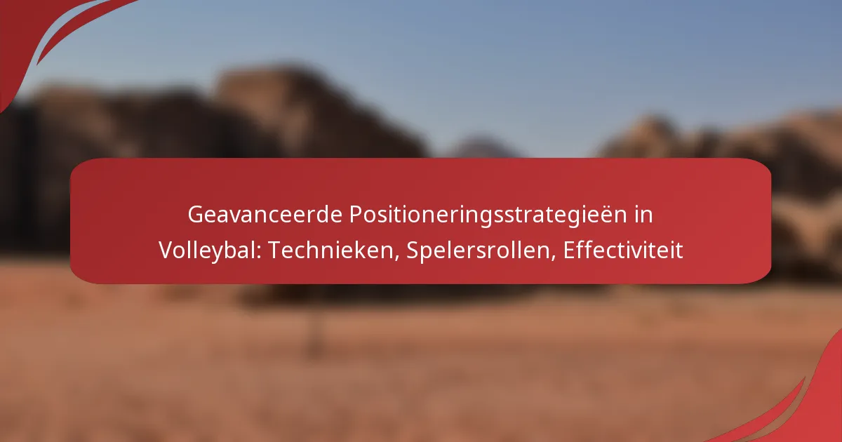 Geavanceerde positioneringsstrategieën in volleybal richten zich op de tactische indeling van spelers om zowel de individuele als de teamperformantie te verbeteren. Door specifieke spelersrollen te begrijpen en effectieve technieken toe te passen, kunnen teams hun scoringspotentieel en defensieve kracht vergroten, wat uiteindelijk leidt tot meer succes op het veld.
