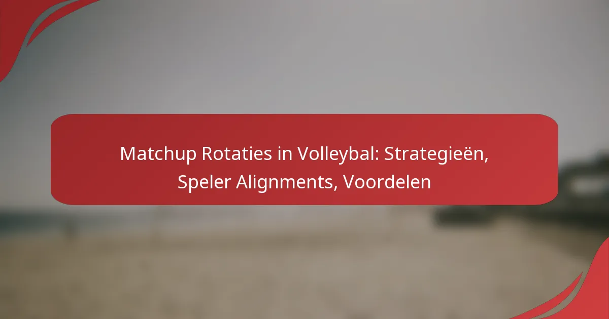 Matchup-rotaties in volleybal zijn strategische spelersuitlijningen die zijn ontworpen om de teamperformantie te verbeteren door gebruik te maken van de zwaktes van de tegenstander. Door spelers zorgvuldig te positioneren, kunnen teams scoringskansen maximaliseren terwijl ze zorgen voor sterke defensieve dekking. Effectieve strategieën in deze rotaties verbeteren niet alleen de aanvallende en verdedigende capaciteiten, maar stellen ook in staat tot grotere aanpasbaarheid tijdens wedstrijden.