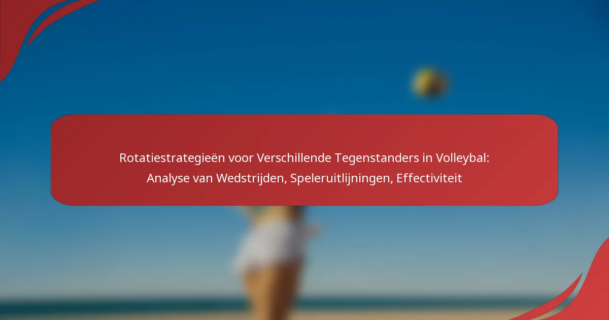 In volleybal zijn belangrijke rotatiestrategieën essentieel voor het maximaliseren van de teamperformance tegen diverse tegenstanders. Door systematisch de bewegingen en uitlijningen van spelers aan te passen, kunnen teams hun sterke punten benutten en de zwaktes van hun rivalen exploiteren. Het analyseren van de kenmerken van de tegenstander is cruciaal voor het ontwikkelen van effectieve match-upstrategieën die het algehele spel en de effectiviteit tijdens wedstrijden verbeteren.